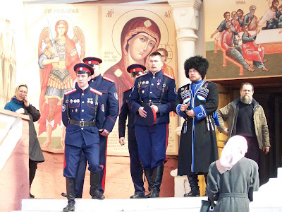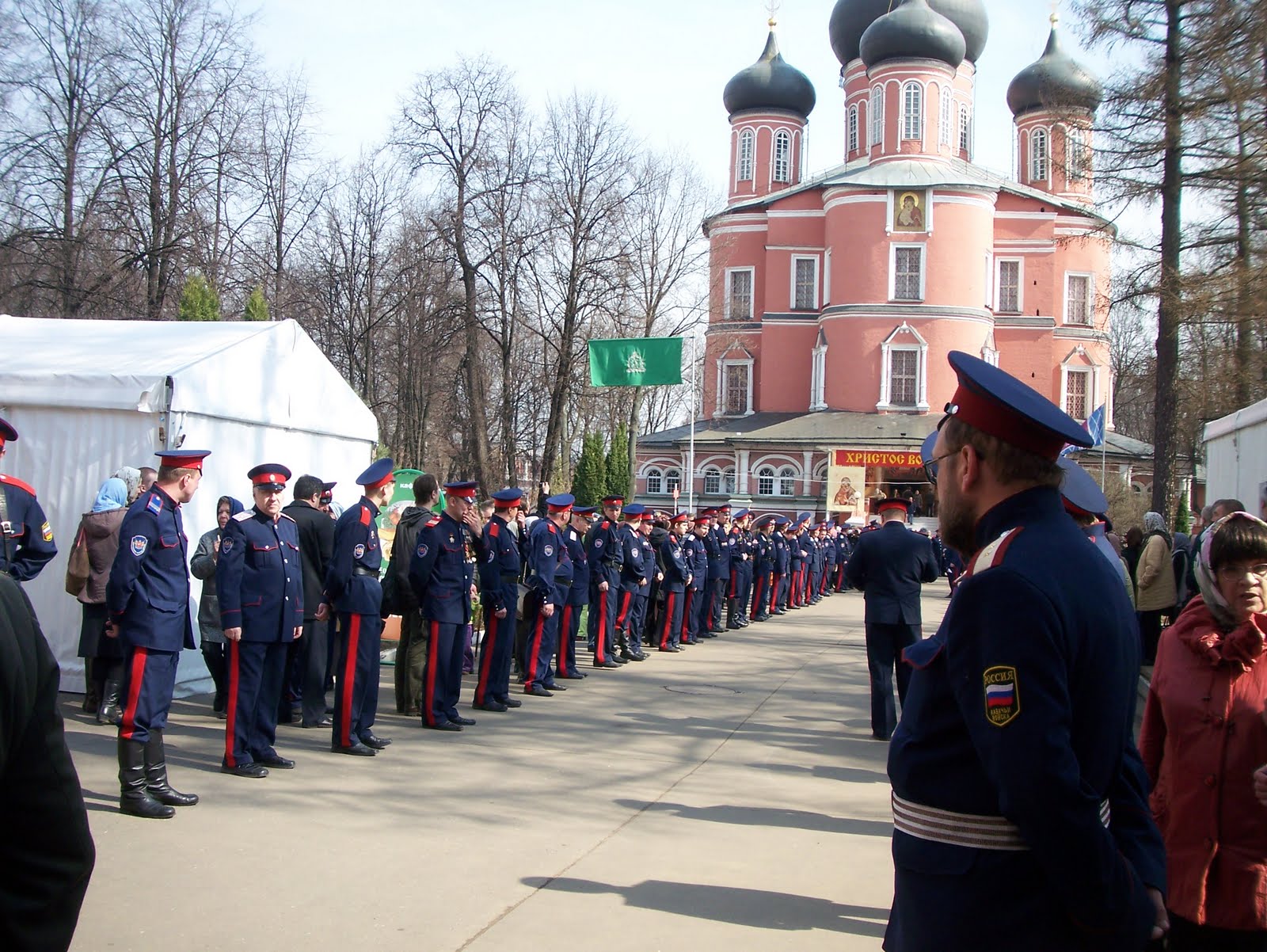 Что точно со мной случилось в прошлую среду (7 апреля) я не знаю, думаю, что сработала проклюнувшаяся журналистская интуиция, но когда я вышла из метро Шаболовская, чтобы идти на работу я не села на трамвай и не пошла, как обычно, вдоль трамвайной линии, а каким-то совсем непостижимым образом я решила сделать крюк и пройти мимо Донского монастыря, думала, что может быть зайду и поставлю несколько свечек за здравие и заупокой. Будучи абсолютно не религиозным человеком я не сразу поняла почему в монастыре так много народу: женщины в красивых ярких платках и калоритные донские казаки с чубами, усами, а некоторые с пузом ;). Вернее я сразу поняла, что Патриарх Кирилл служит молебен и все эти люди собрались приветствовать его, а вот то что он служит по поводу Благовещения я узнала только расспросив прихожан.