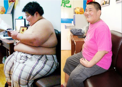 А дело было так. Молодой человек, 24-летний Денг (Deng Xuejian) из Tianjin, который 2 года назад весил более 200 килограмм, совершенно определенно нуждался в похудении.